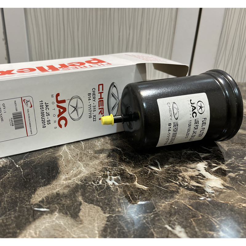 این فیلتر بنزین دارای بدنه فلزی می باشد ،یک موتور برای این که بتواند به درستی کار کند نیاز به سوخت و هوای کافی جهت انجام فرآیند احتراق دارد. به همین خاطر اطمینان از اینکه هر یک از اجزای سیستم سوخت رسانی به درستی کار میکنند بسیار مهم است. یکی از مهمترین بخشهای سیستم سوخت رسانی در خودرو، فیلتر بنزین (فیلتر سوخت) است. وظیفه این قطعه جلوگیری از ورود مواد زائد و ناخالصی های موجود در بنزین به موتور است. از آنجا که همواره به دلیل کثیفی و فرسوده شدن مخازن سوخت و شلنگ های انتقال سوخت در جایگاه های سوخت گیری ممکن است مقداری آلودگی و کثیفی به باک بنزین خودرو وارد شود. علاوه بر این، فرسودگی خود باک بنزین و لوله های انتقال سوخت در مسیر سوخت رسانی به موتور، ممکن ست در ایجاد آلودگی در بنزین مصرفی خودرو، نقش موثر داشته باشند. به همین دلیل در تمامی خودروهای امروزی، از فیلتر بنزین که وظیفه اش پاکسازی سوخت مصرفی خودرو از هر نوع عامل خارجی است، استفاده می شود. از آنجا که سیستم پاشش سوخت انژکتوری در خودروها، دارای دهانه پاشش سوخت تقریبا 2 میلی متری است، در نتیجه وجود هر نوع آلودگی بیش از این اندازه، می تواند باعث گرفتگی انژکتورها و در نتیجه تضعیف عملکرد سیستم احتراق خودرو گردد. با این حساب می توان گفت که وظیفه اصلی فیلتر بنزین در خودرو، صاف کردن بنزین مصرفی از هر نوع آلودگی و عواملی به غیر از بنزین می باشد. این قطعه ، سوخت را از آلودگیهای جامد پاک سازی می کند و آنرا جهت احتراق در اختیار موتور قرار می دهد. فیلتر حاضر ساخت داخل بوده و به جهت تطابق با بنزین یورو 4 به هیچ وجه در تولید آن از چسب و رزین استفاده نشده است. این فیلتر برای سوخت بنزین مورد استفاده قرار میگیرد و برای استفاده در مدلهای خودروی ام وی ام 315 و X22 و JAC S5 و J5 طراحی شده است. این فیلتر ساختاری فلزی و مستحکم دارد و قادر است به خوبی سوخت ورودی به محفظهی احتراق را تصفیه کند. .این فیلتر از نوع معمولی بوده و حالتی استوانهای شکل دارد. فیلتر سوخت نقش مهمی را در فرایند سوخترسانی و احتراق ایفا میکند. فیلتر در مسیر رسیدن سوخت به محفظهی احتراق قرار میگیرد و سوخت ورودی به این محفظه را از وجود ذرات کوچک و ناخالصیهای موجود در سوخت، پالایش میکند.