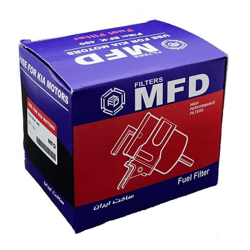 فیلتر بنزین جز قطعات مهم ومصرفی در خودرو میباشد زیرا اگر فیلتر به خوبی عمل نکند مسیر پاشش سوخت مسدود یا نیمه مسدود میشود واین اتفاق باعث داغ شدن و اسیب جدی به پمپ بنزین میشود در نتیجه تعویض به موقع فیلتر بنزین باعث تمیز ماندن انژکتورها،عمر مفید پمپ بنزین و راندمان بالای موتور میشود زمان یا کارکرد دقیقی را برای فیلتر بنزین نمیتوان گفت اما با وجود سوخت های امروزی توصیه ما به شما تعویض فیلتر هر ۲ دفعه تعویض روغن است. فیلتر بنزین برند ام اف دی MFD تولید ایران و از جنس پلیمری است.