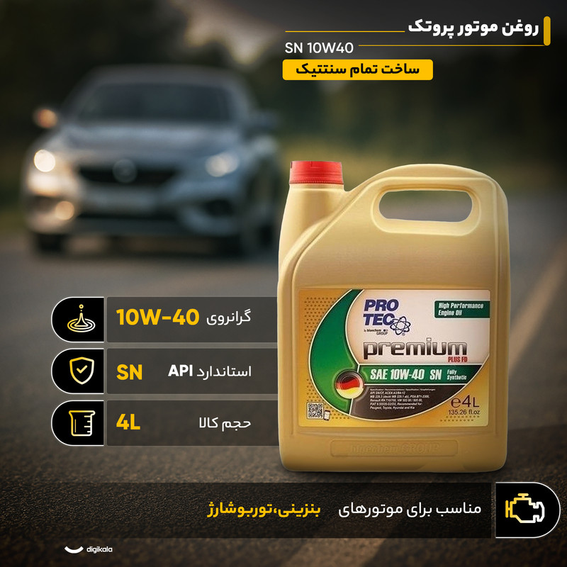 روغن موتور پروتک مدل 10W40 SN با فناوری تمام سنتتیک (Fully Synthetic) تولید شده و یکی از گزینههای حرفهای برای خودروهای مدرن بهویژه با موتورهای بنزینی و توربوشارژ است. این روغن با استاندارد API SN و تاییدیههای معتبر سازندگان جهانی مانند مرسدسبنز MB 229.3، بیامو Longlife-01، فولکسواگن 502.00/505.00، رنو RN0700/RN0710 و پورشه A40، عملکرد و کیفیت بالای خود را در شرایط رانندگی سنگین و دمای بالا تضمین میکند.