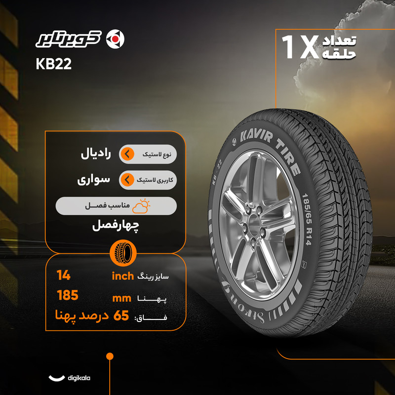 لاستیک خودرو کویر تایر مدل KB22 سایز 14 / 65 / 185 میلی‌متر تولید سال 2025 - 1 حلقه