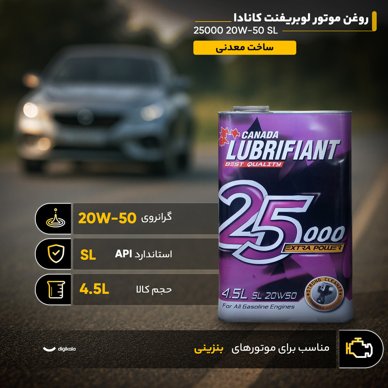 روغن موتور لوبریفنت کانادا مدل 25000 20W-50 SL با حجم ۴.۵ لیتر یک روغن معدنی باکیفیت است که برای خودروهای بنزینی سواری طراحی شده و با استاندارد API SL عرضه میشود. این روغن با ویسکوزیته 20W-50 انتخابی ایدهآل برای شرایط رانندگی در دماهای بالا و یا خودروهایی با کارکرد بیشتر است، زیرا پایداری بالایی در برابر گرما و فشار موتور ایجاد میکند و مانع از کاهش ضخامت لایه روغن در شرایط سخت میشود.