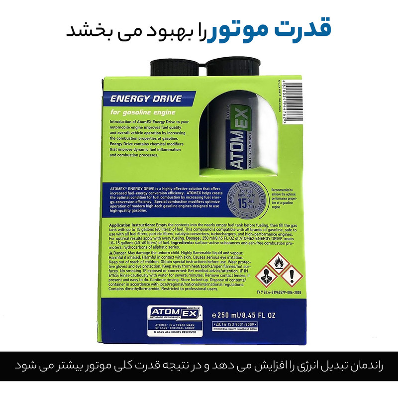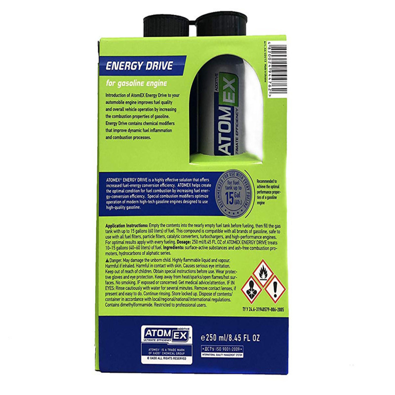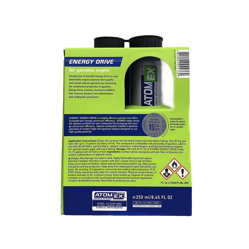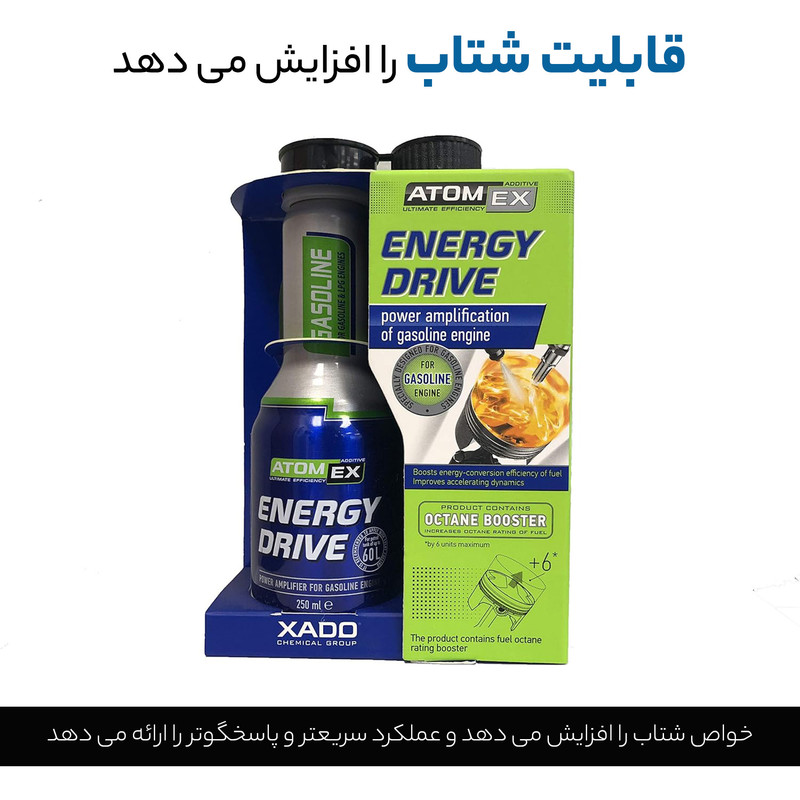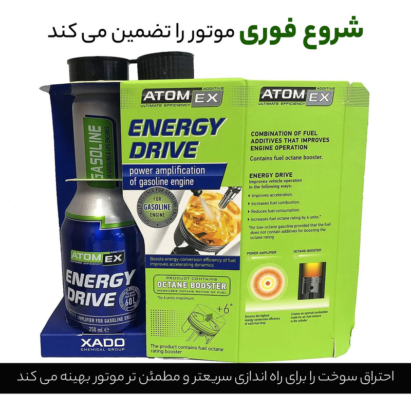 این محصول ( اکتان بوستر انرژی درایو زادو XADO Atom Ex Energy Drive ) مکمل سوخت فوق العاده پیشرفته ای است که به طرز خارق العاده ای خصوصیات احتراق و ویژگی های سوخت را بهبود میبخشد. تاثیر این اکتان به قدری شگرف بوده که به محض اضافه کردن آن به باک خودرو، افزایش تغییرات محسوسی در قدرت موتور و شتاب خودرو مشاهده خواهید کرد.