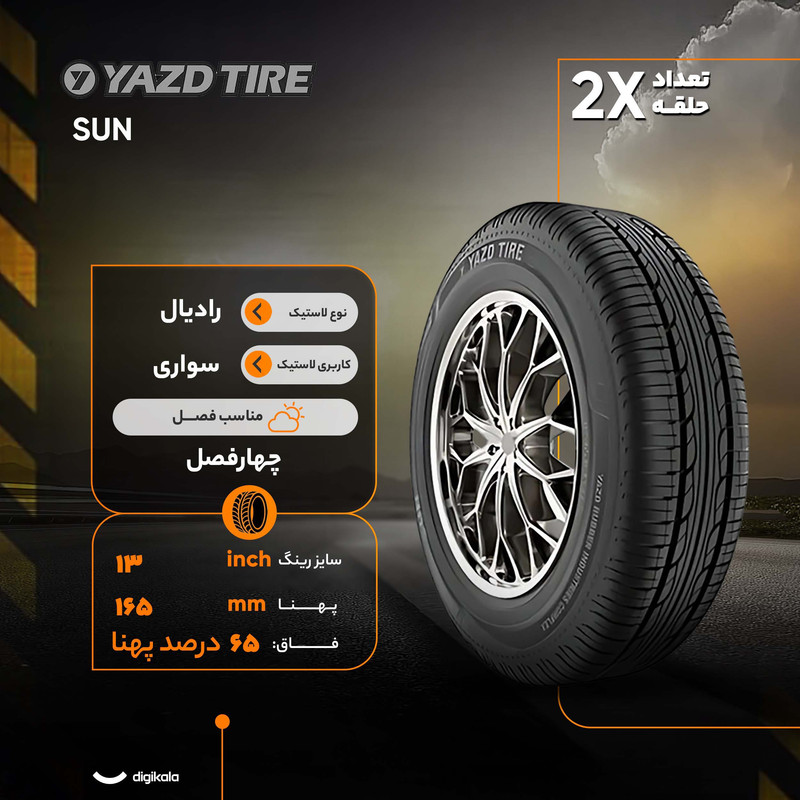 لاستیک یزد تایر مدل SUN با کسب بالاترین رتبهبندی در دو شاخص اصلی عملکرد، یعنی ایمنی و مصرف سوخت، یک انتخاب ممتاز برای خودروهای سواری به شمار میرود. این تایر از برند ایرانی یزد تایر، دارای رتبه A در چسبندگی روی سطوح خیس است. این ویژگی به معنای حداکثر توانایی در تخلیه آب، حفظ تماس با جاده و ارائه کوتاهترین فاصله ترمزگیری ممکن در شرایط بارانی است.