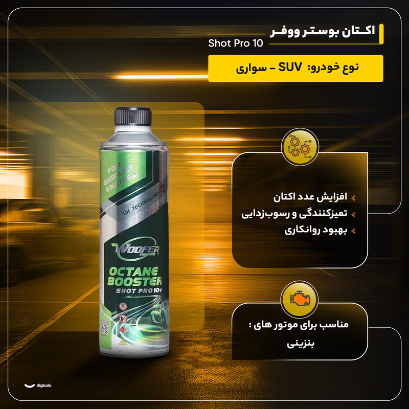 روش استفادهابتدا مکمل را درون باک بریزید و سپس بنزینگیری انجام دهید (یا هنگام سوختگیری استفاده شود)؛ برای هر باک تقریباً ۵۰ لیتر، یک بطری توصیه شده است.