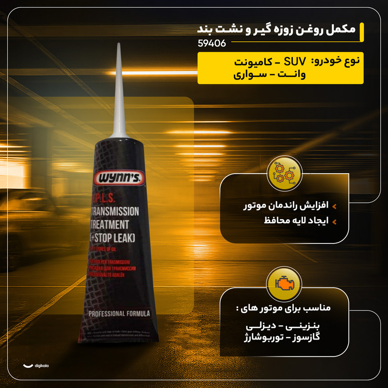 روش استفاده: محتویات قوطی ۱۲۵ میلیلیتری را مستقیماً به روغن گیربکس (جعبه دنده) دستی اضافه کنید.