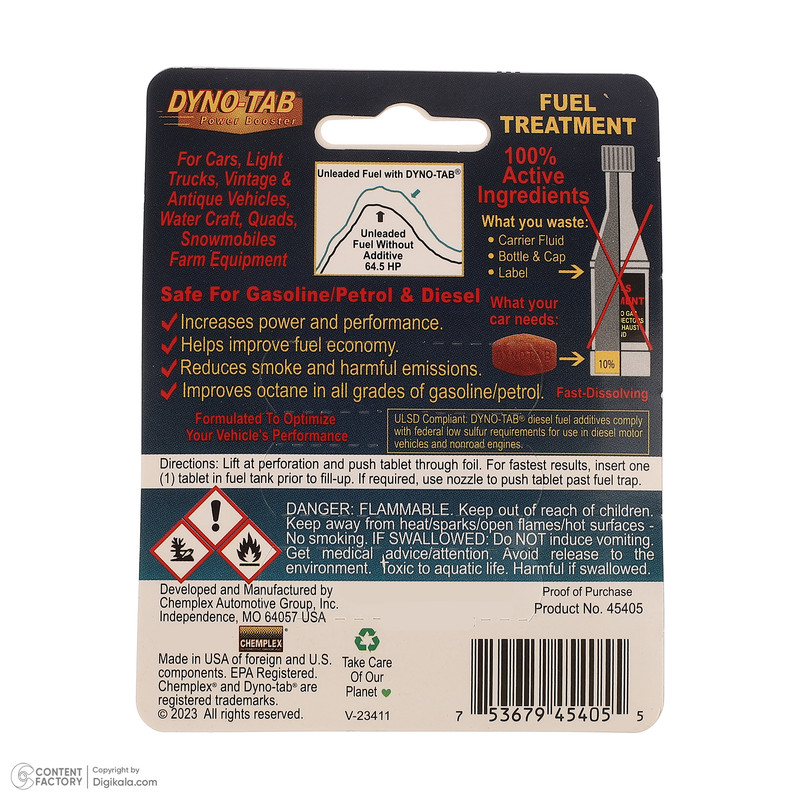 مکمل سوخت **داینوتب مدل 45405 بسته 6 عددی** محصولی کاربردی برای بهبود عملکرد موتور و افزایش کارایی خودرو است. این مکمل با ویژگیهایی نظیر **افزایش عدد اکتان و راندمان موتور** طراحی شده و موجب احتراق کاملتر سوخت میشود. نحوه استفاده آن بسیار آسان است؛ کافی است در هر بار سوختگیری، **یک عدد قرص داینوتب را داخل باک بیندازید** تا اثرگذاری خود را آغاز کند.