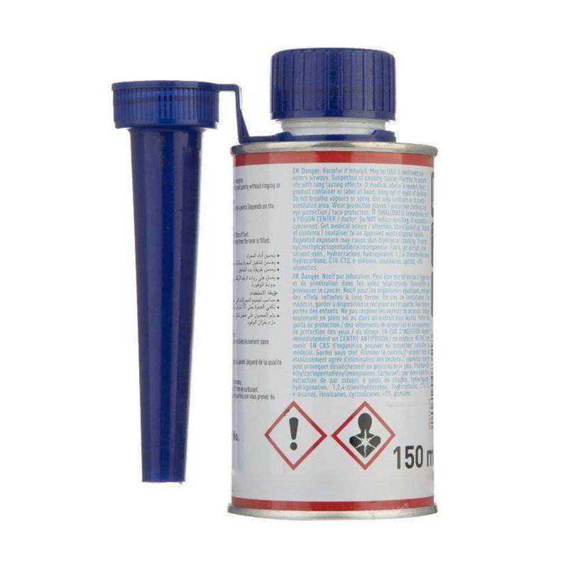 روش استفاده: محتویات قوطی ۱۵۰ میلیلیتری را قبل از سوختگیری به طور کامل داخل باک بنزین بریزید. این مقدار برای حدود ۵۰ لیتر بنزین کافی است و پس از ریختن، به صورت خودکار با سوخت مخلوط میشود.