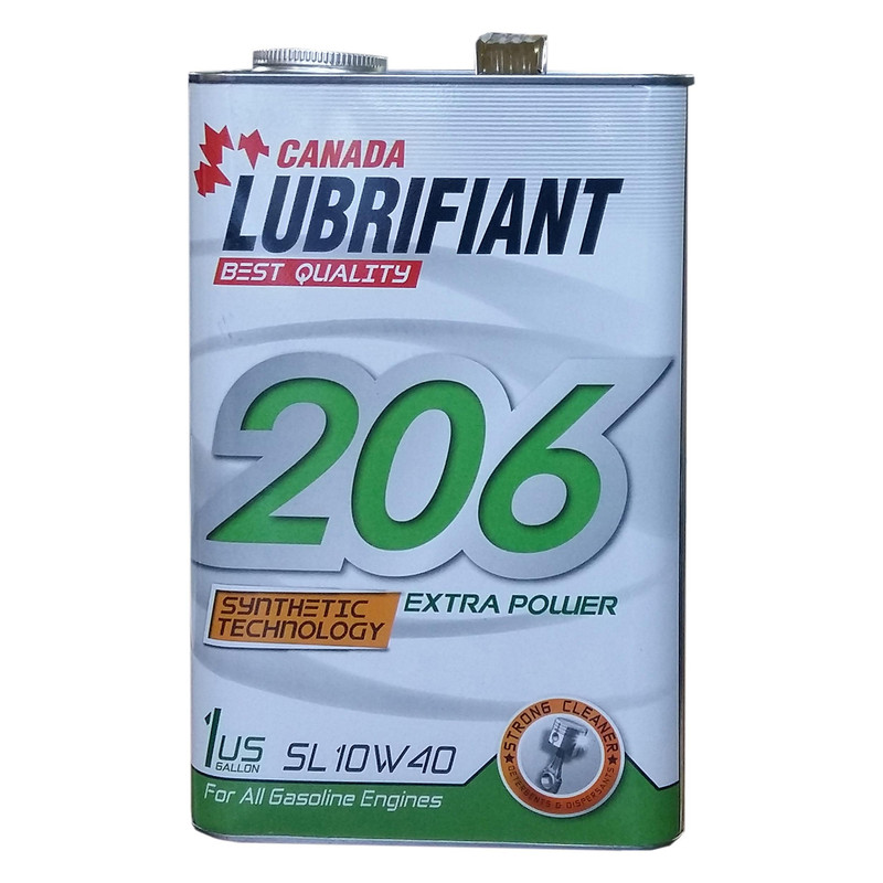 روغن موتور مدل 206 با درجه گرانروی 10W40 SL یکی از با کیفیت ترین روغن موتورهای شرکت لوبریفنت کانادا جهت استفاده در خودروهای بنزینی و در مدل های سال 2010 به بالا میباشد. افزودنی های این روغن موتور توسط شرکت infineum در کشور آلمان و تایید ولوو و رنو تولید و با بالاترین کیفیت ساخت توسط شرکت لوبریفنت کانادا استفاده شده است. برای تولید این روغن موتور از روغن پایه با کیفیت 3 و 4 استفاده شده است که قدرت پاک کنندگی بسیار بالا و تحمل حرارت باورنکردنی دارد. لازم به ذکر است این روغن موتور دارای تاییده 229/3 مرسدس بنز میباشد.
