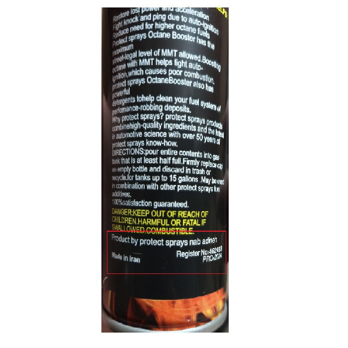 روش استفاده: باز کردن درب و با استفاده از تجهیزات همراه، ریختن تمام مواد به یک باک کامل بنزین خودرو