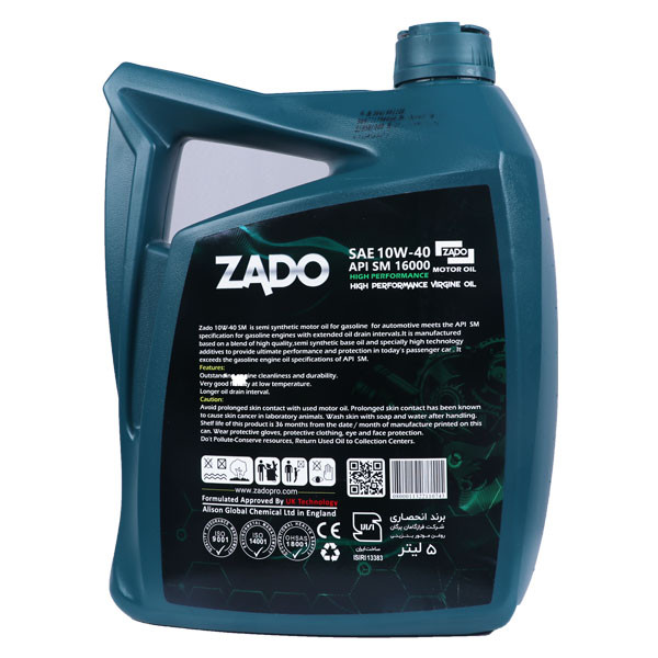 روغن موتور بنزینی 10W-40/SM با استفاده از روغن پایه سنتتیک با اندیس گرانروی بالا و بکارگیری از بهترین مواد افزودنی مرغوب جهت مصرف در تمامی فصول و شرایط اب و هوایی ایران تولید گردیده است. روغن موتور زادو تحت لسیانس و فرمولاسیون انگلستان تولید میشود و با توجه به کیفیت بسیار بالای محصولات زادو علاوه بر نشان استاندارد ملی, توانسته است استاندارد CE اروپا, ایزو 9001, ایزو 14001, ایزو 18001بین المللی را نیز کسب نماید که بر روی محصول درج شده است. این محصول که مطابق با یکی از بالاترین سطوح کارایی API تولید گردیده و جهت مصرف در خودروهای بنزینی مناسب میباشد. برخی از مزایای این روغن موتور شامل: استارت آسان و رسیدن سریع روغن به قطعات به نحو ممتاز, به منظور روانکاری در دماهای پایین پایداری برشی ممتاز محصول که منجر به حفظ گرانروی در تمام طول مصرف میگردد. قابلیت ممتاز در حدف حرارت زائد از موتور برای حفظ ساختار متالوژیکی قطعات خاصیت ضد سائیدگی جهت کنترل فرسایش قطعات موتور خاصیت ضد اکسیداسیون و پایداری حرارتی ممتاز میباشد. این روغن موتور جهت خودروهای نیسان, رونیز, پیکاپ, چانگانCS35, آریوS300, تویوتا یاریس, ماتریکس, کمری, آوالون, FJکروز, کیا ریو, سراتو, لنسر, هیوندای اکسنت و کلیه خودروهایی که استانداردهای فوق با ویسکوزیته 10W40 توسط سازنده خودرو توصیه شده است. خریدار محترم : خودروهای معرفی شده صرفا از جهت نمونه معرفی شده است و قطعا خودروهای دیگری نیز از این روغن موتور استفاده می کنند.لطفا قبل از انتخاب روغن موتور با مراجعه به دفترچه راهنمای خودرو و یا جستجو در مراجع قابل اطمینان در حوزه روانکار، از مناسب بودن نوع روغن موتور ( ویسکوزیته یا غلظت ) با خودرو خود اطمینان حاصل فرمایید