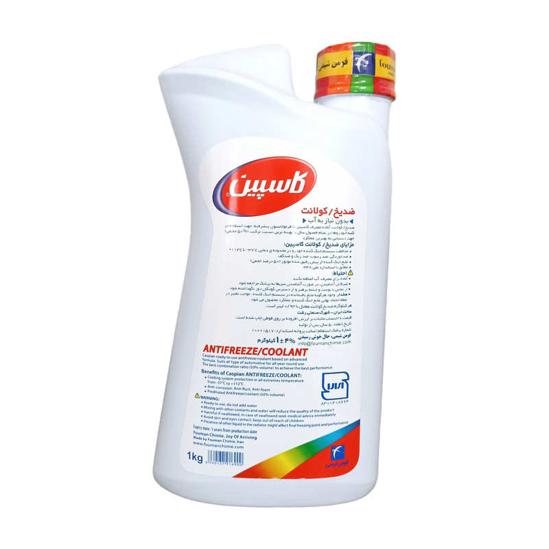 ضدیخ کاسپین مدل کولانت 50/50 وزن 1 کیلوگرم جزء بهترین ضدیخهایی است که میتوانید برای خودروی خود تهیه کنید. ترکیبات موجود در آن، این محصول را مجهز به خواص فوق العاده ای از جمله ضد خوردگی، ضد زنگ و ضد رسوب کرده است. محدوده دمایی وسیعی که این ضدیخ مرغوب پوشش می دهد موجب می شود از این محصول در تمام فصل های سال به راحتی استفاده کنید. این ضدیخ نیاز به ترکیب شدن با آب ندارد. از لحظه ای که درب آن را باز کنید، آماده مصرف است. در سردترین نقاط کشور که باشید می توانید از خواص ویژه این ضدیخ بهره مند شوید. محافظت دمایی ضدیخ کاسپین مدل کولانت بین منفی 37 درجه سانتی گراد تا مثبت 112 درجه سانتی گراد است. ضدیخ کاسپین مدل کولانت 50/50 وزن 1 کیلوگرم دارای ویژگیهای منحصر به فردی است: رادیاتور خودرو از زنگ زدگی، رسوب، خوردگی و خورندگی در امان می ماند. مطابق با استاندارد ملی ایران به شماره 338 تولید شده است و برای استفاده در خودروهای داخل کشور مناسب است. در فصل تابستان به عنوان مایع ضد جوش و خنک کننده موتور خودرو عملکرد فوق العاده ای دارد. با ترکیباتی که دارد از آسیب ها و هزینه های گزاف تعمیر خودرو جلوگیری می کند. با تمام این توصیفات، استفاده از این ضدیخ بسیار به صرفه است.