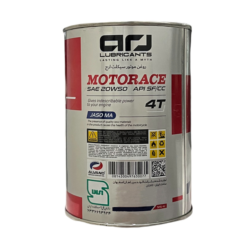 روغن موتور ارج لوبریکنتس مدل MOTORACE با درجه گرانروی 20W50 و سطح کیفیت API SF/CC محصول با کیفیت شرکت الوند سپاهان اصفهان است. این روغن موتور مناسب موتورسیکلت های ۴ زمانه است. این شرکت با تکیه بر دانش و تجربه فنی و پشتکار جمعی از مهندسین صنعت نفت ایران و با هدف ایجاد فرصت های شغلی و نیل به خود کفایی در تولید انواع روان ساز ها در سال 1391 در شهرستان کاشان تاسیس و پس از اخذ مجوز های لازم شروع به تولید کرد. تولیدات این شرکت شامل انواع روغن موتور های بنزینی و دیزلی ، مونوگرید و مالتی گرید و روغن های دنده دستی و گیربکس اتوماتیک بوده که با برند های ارج لوبریکنتس و فارینلوب به بازار عرضه می گردد . کلیه محصولات این شرکت از مرغوب ترین روغن های پایه حاصل از پالایش نفت خام و مواد افزودنی با کیفیت اروپایی و مورد تایید کمپانی های بزرگ خودروسازی ایران تولید و با بهره گیری از تجهیزات مدرن و پیشرفته در بسته بندی های متنوع و مطلوب در بازار عرضه می گردد .