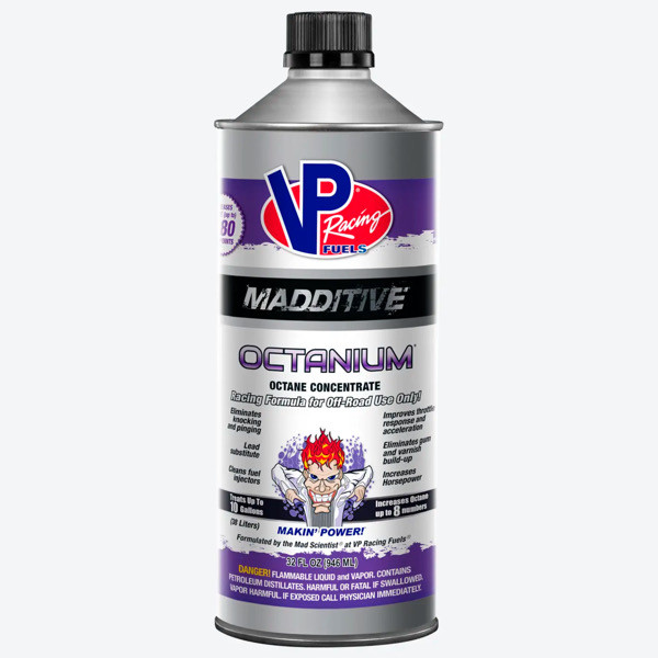 اکتان بوستر VP Racing فقط با 946 سی سی در 38 لیتر بنزین تا 80 پوینت (8 واحد) عدد اکتان را افزایش می دهد، می توانید به جای خرید سوخت مسابقه ای، از محصول MADDITIVE OCTANIUM شرکت VP استفاده کنید. از دیگر ویژگی های این محصول افزایش قابل توجه کیفیت سوخت، افزایش 8 عدد اکتان (80 پوینت)، رفع ناک، افزایش توان و گشتاور قابل توجه (تست شده بر روی دستگاه دینامومتر)، شستشوی مدار سوخت و سلامت موتور خودرو و همچنین می توانید در استفاده شهری بدون تهیه سوخت مسابقه راندمان بالایی داشته باشید. شرکت VP همان تولید کننده ی سوخت های مسابقه ای می باشد. خودروهای مدرن اسپرت شهری ، تیونینگ شده و آفرود میتوانند از این مکمل بهره مند شوند . این محصول مناسب استفاده با انواع بنزین (سوپر و معمولی) می باشد.این محصول برای خودروهایی که فاقد مبدل کاتالیست هستند، مناسب است. اکتان بوستر و مکمل سوخت وی پی از محبوبترین برندهای مکمل سوخت است که علاوه بر رفع ناک زدن موتور، موجب افزایش چشمگیر شتاب و توان موتور میگردد. روانکاری بالا جهت حرکت راحت رینگ پیستون، محافظت از سیت سوپاپ و کاهش مصرف سوخت از ویژگیهای بارز این اکتان میباشد. اکتان بوستر و مکمل سوخت وی پی از جمله قویترین و پرطرفدارترین اکتان بوسترهای دنیاست.