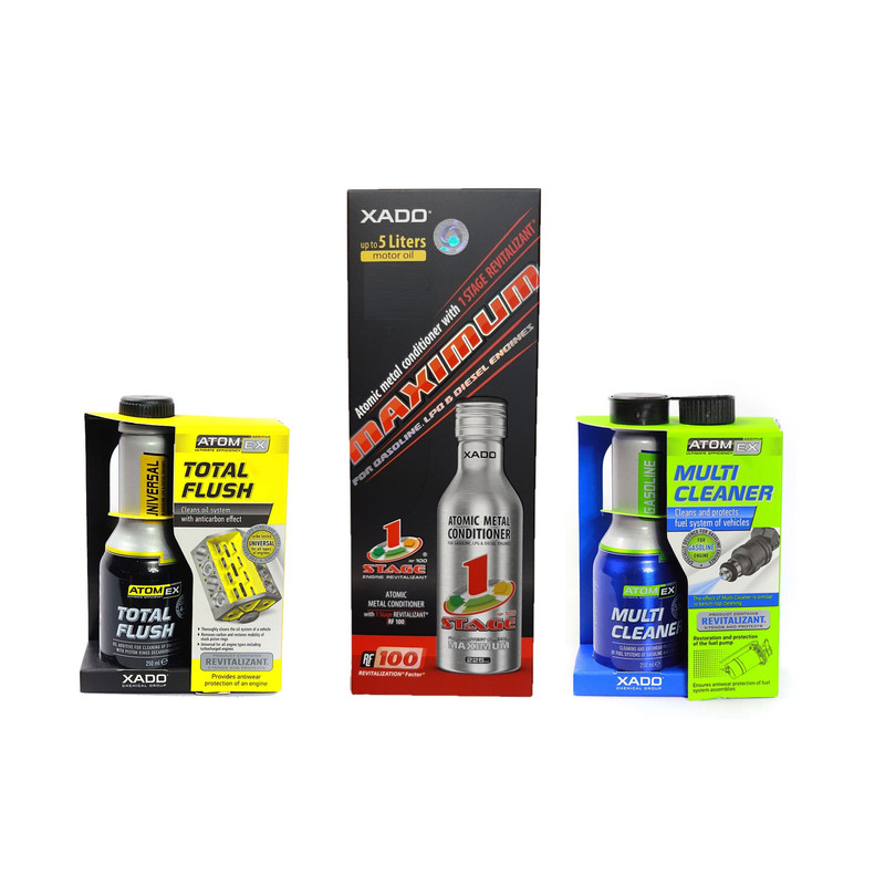 پکیج احیای خودرو اکسادو مدل 1 جهت بازیابی توان از دست رفته موتور خودرو ساخته شده است. در این پکیج 3 محصول موتورشوی غیراسیدی توتال فلاش اکسادو (250 میلی لیتر)، تمیزکننده سیستم سوخت و انژکتور مولتی کلینر اکسادو (250 میلی لیتر) و احیاگر ماکزیمم اکسادو (225 میلی لیتر) قرار دارد. عملکرد تمیزکننده سیستم سوخت و انژکتور مولتی کلینر اکسادو پاکسازی و احیای سیستم سوخت رسانی و انژکتورها می باشد. عملکرد موتورشوی غیراسیدی توتال فلاش اکسادو پاکسازی کامل سیستم گردش روغن از هر نوع آلودگی با خاصیت آنتی کربن (پاکسازی کربنها) است. در نهایت عملکرد احیاگر ماکزیمم اکسادو بازسازی سطوح تحت سایش موتور خودرو و ایجاد لایه نانوسرامیک جهت محافظت از موتور خودرو در مقابل سایش است. این پکیج فوق العاده برای تمامی خودروهای بنزینی تا حجم 5 لیتر روغن موتور توصیه میشود. ممکن است زبان و نوشتههای روی پک بستهبندی محصولات با توجه به سفارش کشورهای مختلف، با عکسهای قرار داده شده متفاوت باشد.