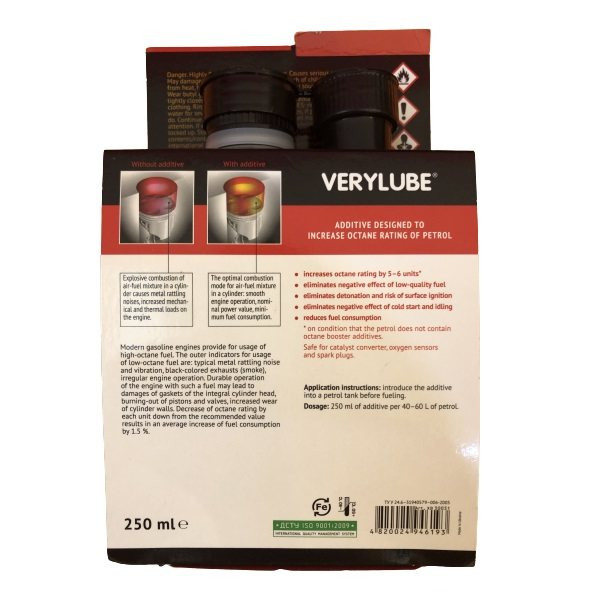 محصول XADO VERYLUBE OCTANE BOOSTER فرموله شده برای افزایش اکتان بنزین جهت جلوگیری از کلیه مضرات سوخت نامرغوب در موتور خودرو بهویژه خودروهای وارداتی به بازار آمد. همه موتورهای مدرن برای بنزین با اکتان بالا طراحی شدهاند. نشانههای سوختن بنزین نامرغوب در موتور صدا و لرزش غیرعادی، دهانه اگزوز سیاهرنگ و کارکرد غیرطبیعی موتور است. کارکرد موتور اگر در این شرایط ادامه پیدا کند، باعث خرابی سرسیلندر، سوختن پیستونها و سوپاپها، افزایش فرسایش سیلندر و اجزای مرتبط به آن میشود. به ازای کاهش هر واحد اکتان بنزین 1.5 برابر مصرف سوخت افزایش مییابد. هر بسته از این محصول حاوی یک قوطی 250 میل مناسب برای 60 لیتر بنزین است. از مزایای اکتان بوستر Xado افزایش اوکتان سوخت 5 تا 6 واحد، افزایش چشمگیر شتاب و قدرت موتور، افزایش احتراق سوخت، کاهش ناک زدن موتور، خنثیسازی اثرات سوخت نامرغوب و خنثیسازی کلیه اثرات منفی کارکرد درجای موتور (کارکرد درجای موتور باعث دوده و کربن گرفتن پیستون و سایر متعلقات آن شده و این امر باعث کاهش قدرت موتور، افزایش مصرف سوخت، افزایش گازهای خروجی موتور و درنهایت کاهش کارآیی موتور میشود) است. روش استفاده به این صورت است که محتوای قوطی را قبل از سوختگیری در باک خودرو خالی کنید و سپس سوختگیری نموده و طبق روال همیشه از خودرو استفاده کنید. اکتان بوستر بر هیچیک از اجزای خودرو مانند کاتالیست، سنسور هوا و شمعها و … تأثیر منفی نخواهد داشت. در هر بار سوختگیری میتوان از این محصول استفاده کرد.