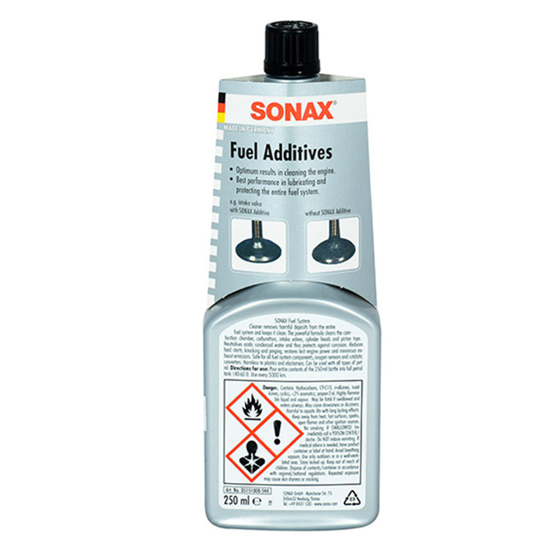 این محصول در حجم 250 میلی لیتر عرضه می شود. استفاده از تمیز کننده سیستم سوخت سوناکس موجب جرم زدایی و ازبین رفتن رسوبات شده و آب اسیدی موجود در سوخت را خنثی می کند. بخش های مختلف سیستم سوخت از آلودگی ها پاک شده و سیستم سوخت خودرو جانی دوباره می گیرد.