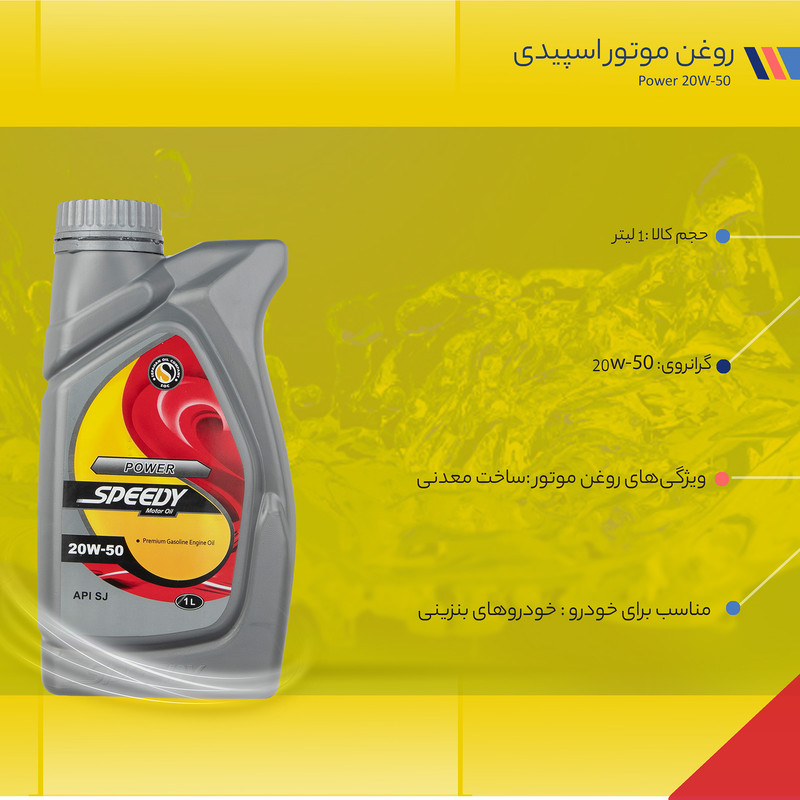 دستهبندی: روغن موتورحجم کالا: 1 لیتراستاندارد API: SJگرانروی (ویسکوزیته): 20W-50مناسب برای خودرو: خودروهای بنزینیسایر توضیحات : - محافظت بسیار عالی دربرابر رسوبات ناشی از حرارت بالا - قدرت بالای پاککنندگی موتور - پایداری حرارتی و پایداری اکسیداسیون بالا - شاخص گرانروی نسبتا بالا در مقایسه با روغنهای 10W-40 برای روانکاری مناسب در دماهای بالاتر محیط و موتورنوع روغن موتور : ساخت معدنینمایش بیشتر