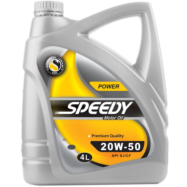 روغن موتور فوق یکی از محصولات تولیدی شرکت «اسپیدی» (Speedy) است که تحت عنوان مدل «Power 20W50» به بازار عرضه میشود. این محصول دارای سطح کیفیت SJ/CF بوده که نشان میدهد میتوان از آن برای خودروهای بنزینی و دیزلی استفاده کرد. از این روغن موتور نمیتوان برای خودروهای مدرن استفاده کرد چراکه سطح کیفیت آن مقداری برابر SJ است. بهترین گزینه برای این روغن موتور خودروهای تولیدی قبل از سال 2001 میلادی هستند. شرکت اسپیدی این محصول را به روش معدنی تولید میکند. یکی از ویژگیهای این محصول پایداری حرارتی بالای آن است. این خصوصیت باعث شده است تا روغن بهراحتی دچار اکسیداسیون نشود. روغن فوق بخشهای متحرک موتور خودرو را بهخوبی روانکاری میکند و مانع از ایجاد اصطکاک بین آنها میشود. این محصول دارای گرانروی 20W50 است. این مشخصه نشان میدهد که از این روغن موتور میتوان در آبوهوای گرم و سرد (چهار فصل سال) استفاده کرد. این محصول در حجمی 4 لیتری عرضه میشود.
